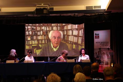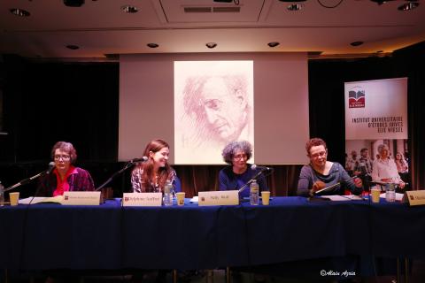 La dernière séquence a examiné l’écriture comme espace translinguistique et transculturel, nourri par la pluralité des mondes traversés par Wiesel. Myriam Ruszniewski-Dahan, dans « La poétique de l’exil chez Wiesel », a montré comment l’exil structure la dynamique narrative. Delphine Auffret, dans « Figures féminines de la tradition et de la modernité chez Wiesel », a exploré les représentations féminines dans l’œuvre. Et Michèle Tauber, dans « Elie Wiesel : la traversée des langues », a rappelé remarquablement la présence multiple du yiddish, de l’hébreu, du français et de l’anglais dans l’œuvre.